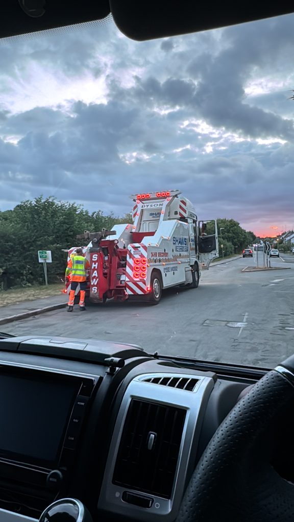 Cue three hours on hold to the breakdown line. Three hours! I could have crocheted a doily by then and then some as they never did answer. Meanwhile, Jo phoned the police, who arrived in force. Five of them, standing around like extras from The Bill, deciding how best to move us without making the traffic situation worse. Spoiler: impossible.
