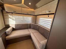 Picture this: a semi-U lounge at the back, upholstered in something designed to repel both gravy and Labrador hair. A TV in a cabinet – because nothing says luxury like EastEnders on the A40. The bed? A theatrical drop-down affair from the ceiling, like a panto dame making her entrance. “It’s behind you!” (and indeed, it usually is).